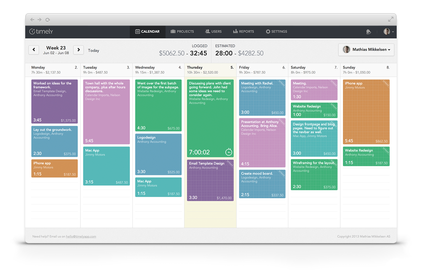 This is the web app for Timely. It's all drag-and-drop and you got no save buttons. We wanted to make it work more like a desktop app than a traditional web app. It also syncs in fully real-time with the iPhone app.