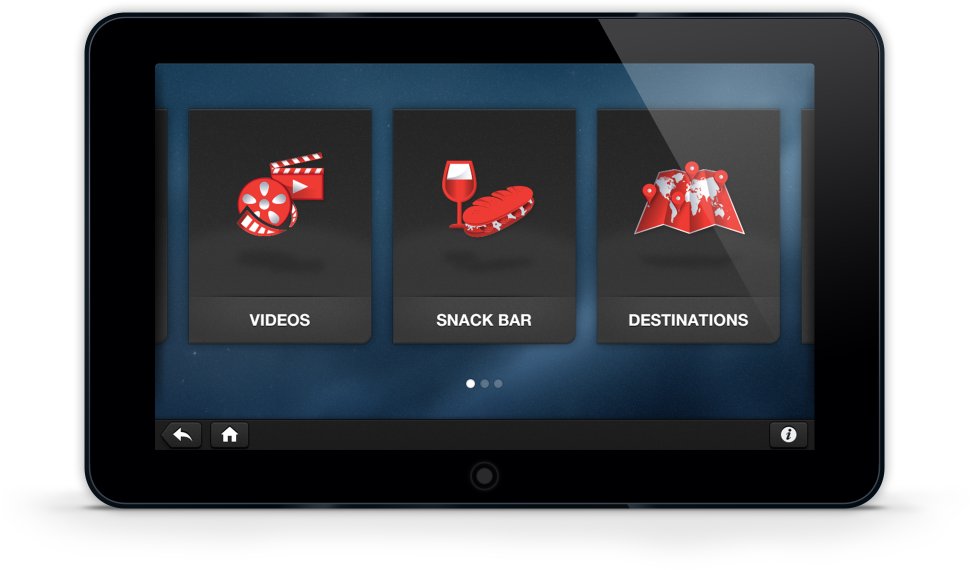 The GUI was created for a 10-inch tablet, located on the back of every seat in Norwegian's new Dreamliner-planes. Among several options, users can watch movies, buy snacks and and move around an interactive map. The system is built on Android.